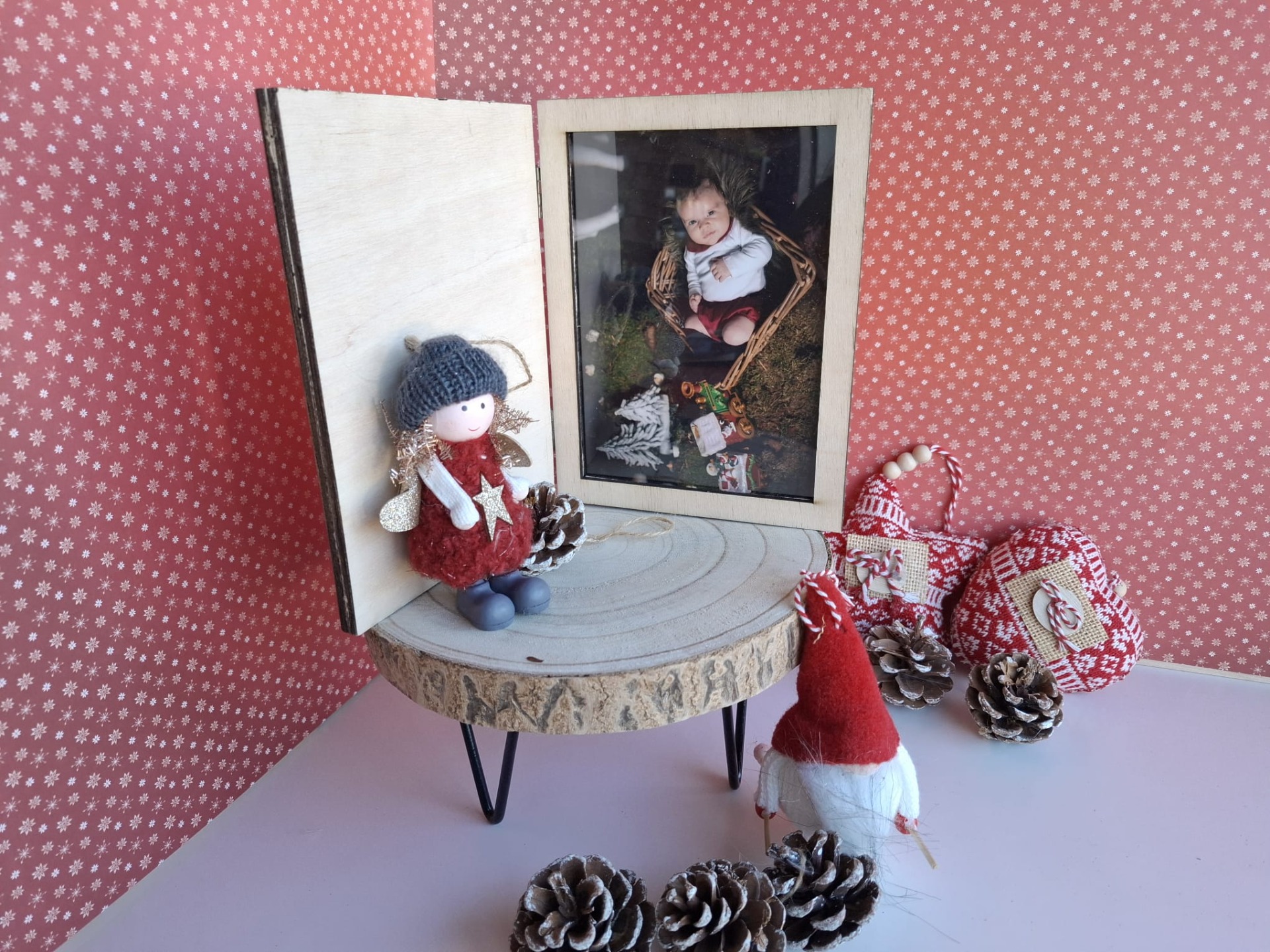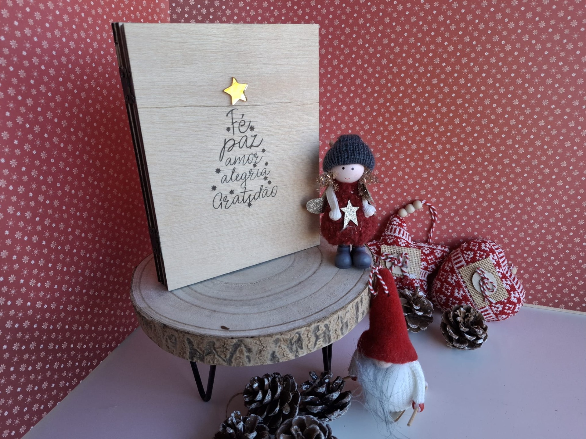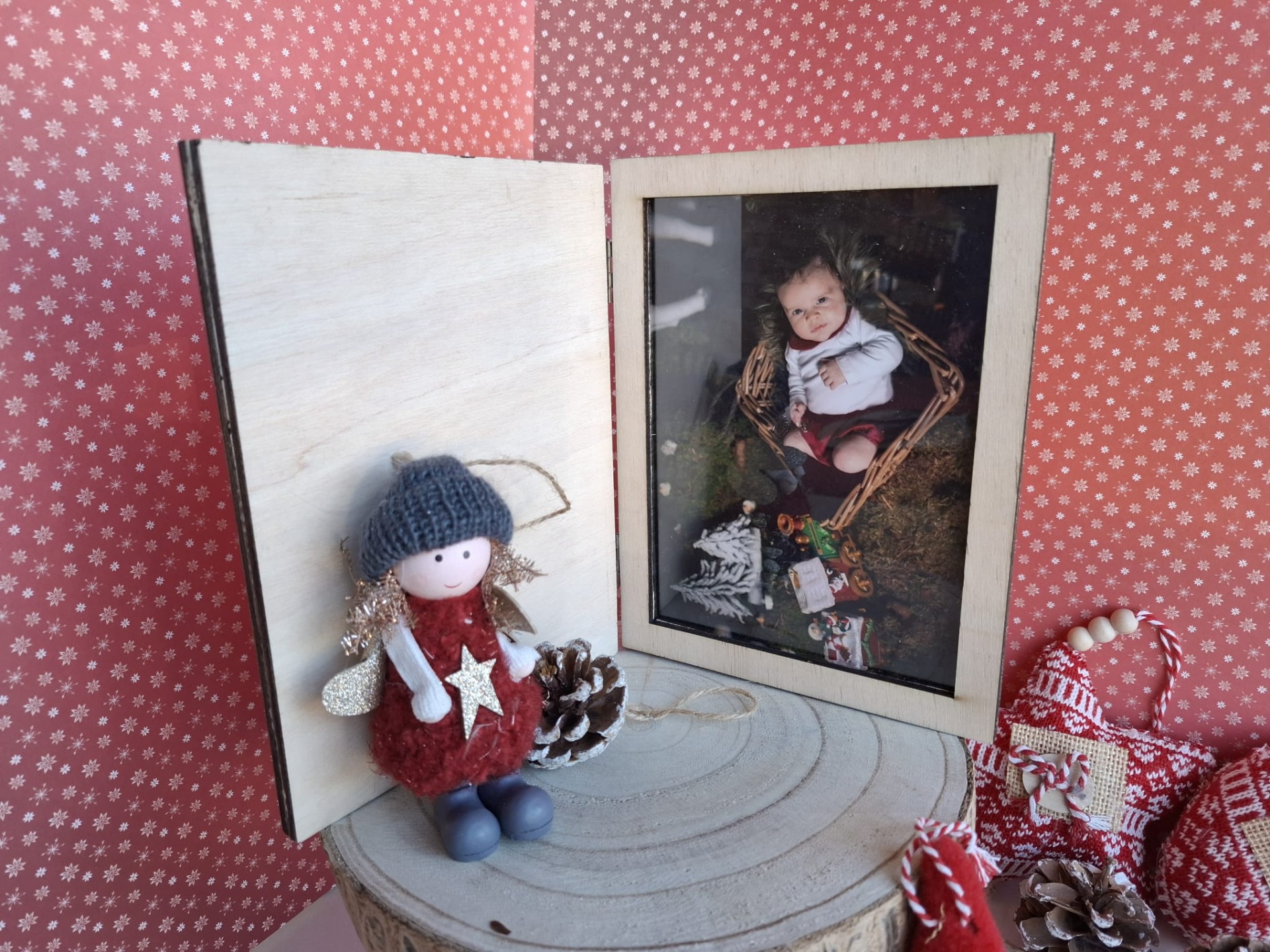 Moldura em formato de livro, personalizada e ideal para oferecer nesta época especial. No interior, inclui espaço para fotografia, tornando-a uma peça perfeita para guardar e expor memórias de Natal com um toque único.